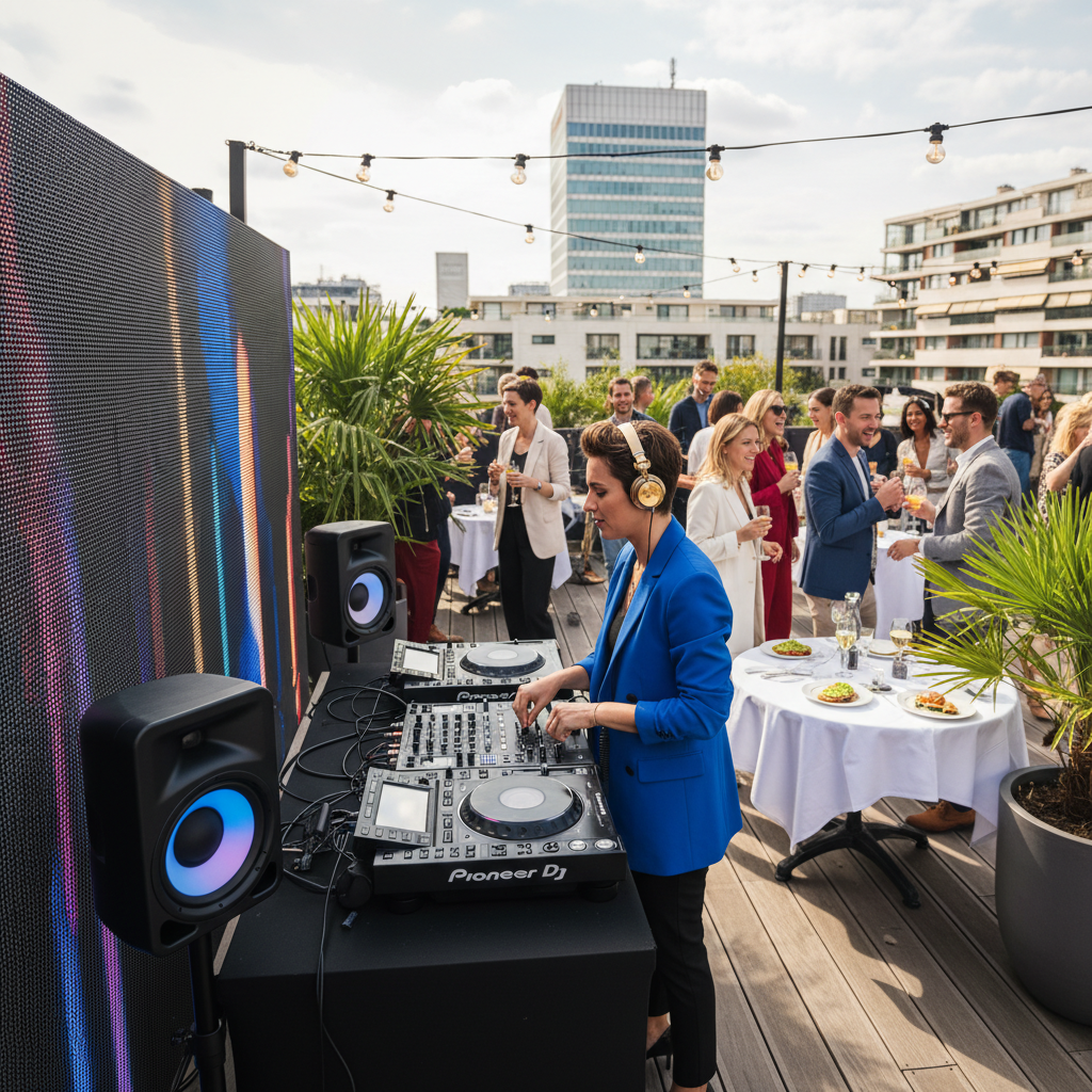 - Matériel professionnel haut de gamme : platines modernes, enceintes adaptées, micros sans fil.
