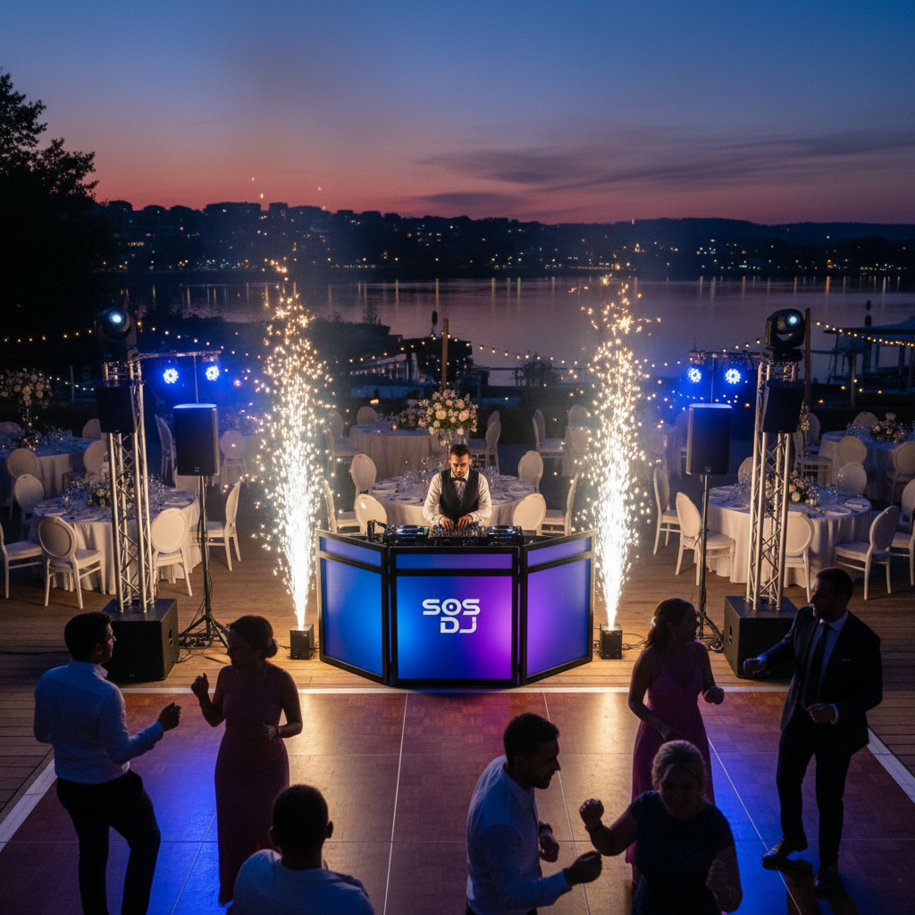 SOS DJ propose une machine à étincelles froide, garantissant un effet spectaculaire sans fumée ni bruit, adaptée aux lieux prestigieux comme la Salle Mylène, La Pergola Nova ou Le Grand Hôtel Barrière. Notre équipement de pointe inclut également une sonorisation complète, un éclairage d’ambiance et des options personnalisables comme les jeux de lumière LED, karaoké ou DJ sets haut de gamme.