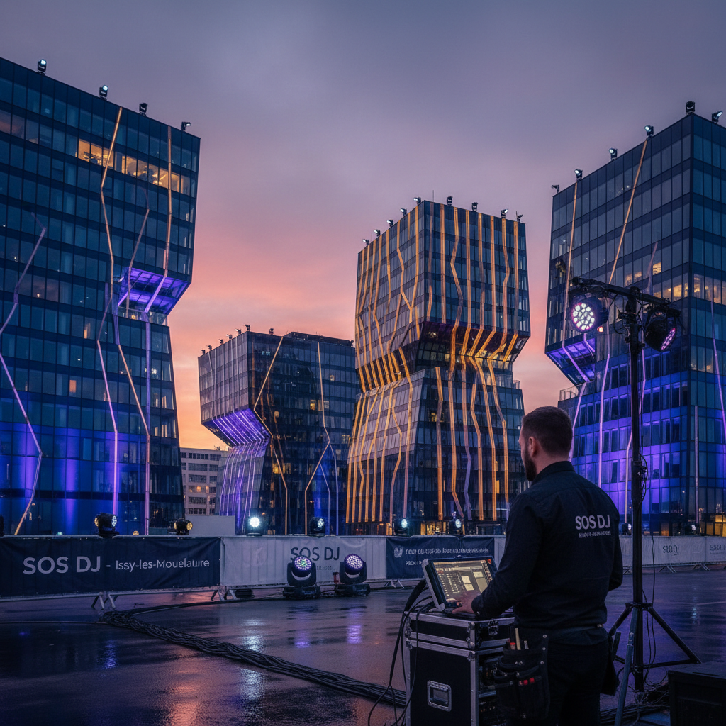 Bienvenue chez SOS DJ, votre spécialiste local en éclairage architectural à Issy-les-Moulineaux, au cœur de l’Île-de-France. Cette ville dynamique, toute proche de Paris, offre un cadre idéal pour sublimer vos événements : mariages, soirées professionnelles, réceptions privées ou manifestations culturelles.