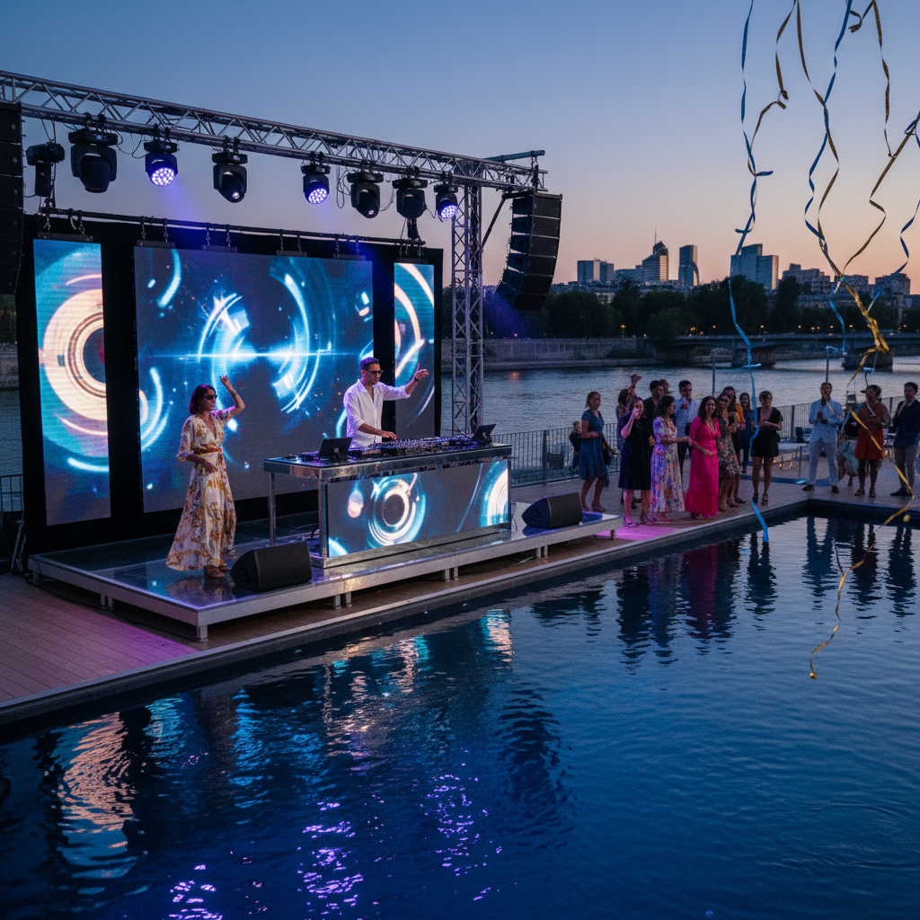 Profitez d’un éclairage LED coloré, de lasers et d’effets visuels immersifs, parfaits pour un toit-terrasse, un parc ou une péniche sur la Seine. Nous personnalisons votre animation musicale selon vos envies : électro, house, funk, reggae, hits du moment. Micro pour discours ou animations disponible selon besoin.