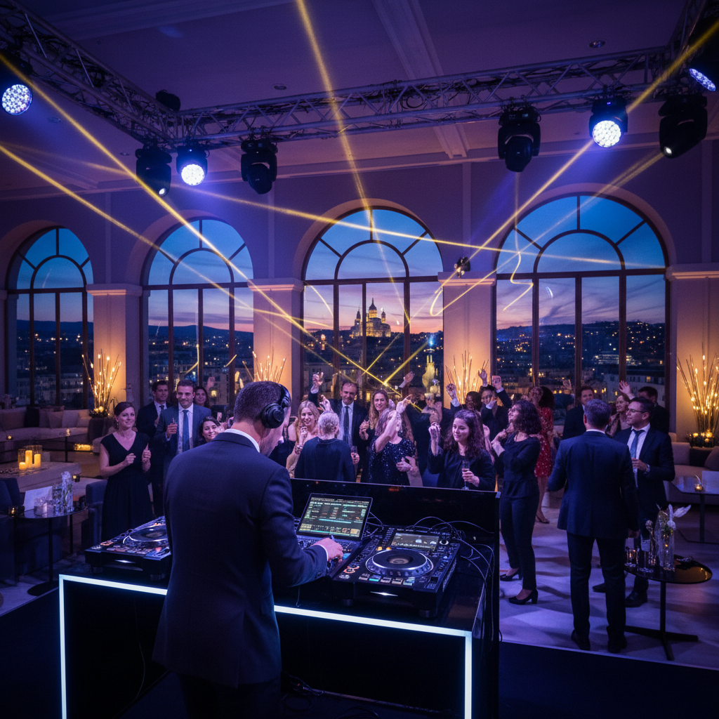 - Animation DJ experte avec playlists personnalisées, en cohérence avec l’image de votre entreprise