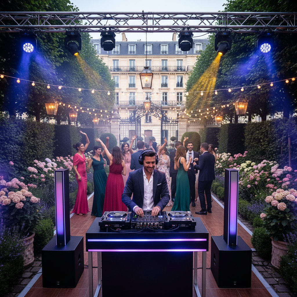 SOS DJ propose un matériel haut de gamme adapté aux garden parties, en intérieur comme en extérieur. Nous fournissons des enceintes puissantes et discrètes, une table de mixage moderne, des éclairages LED d’ambiance personnalisables, ainsi qu’une large bibliothèque musicale couvrant tous les styles, du lounge chill aux rythmes festifs.