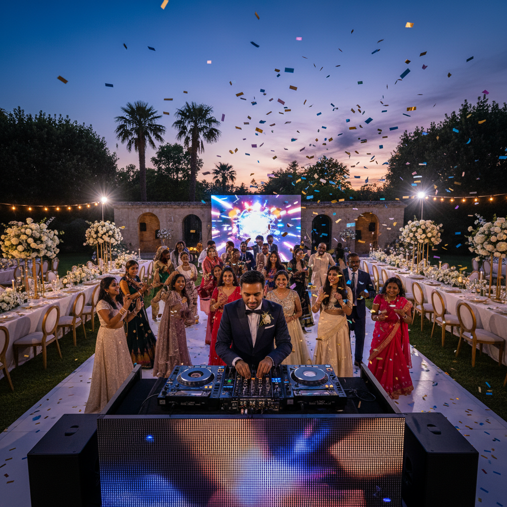 Notre expérience des mariages mixtes nous permet de mixer habilement rythmes traditionnels, électro et musiques du monde, assurant une fête dynamique et pleine d’émotions. Nos DJs, formés à gérer tous types de publics et demandes de dernière minute, garantissent une soirée fluide, joyeuse et mémorable.