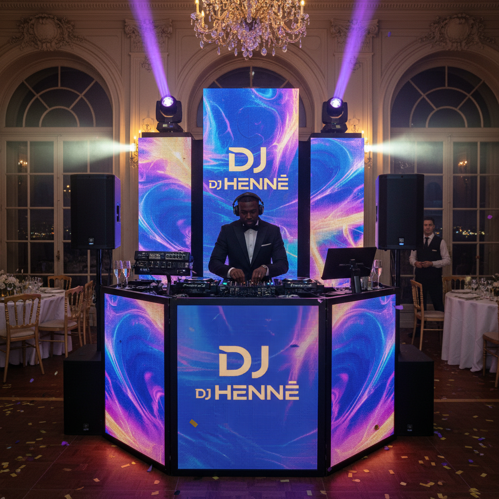 La prestation inclut un matériel professionnel complet : sonorisation de haute qualité, éclairages personnalisés pour l’ambiance henné, et une cabine DJ équipée pour s’adapter parfaitement aux contraintes des différents lieux.