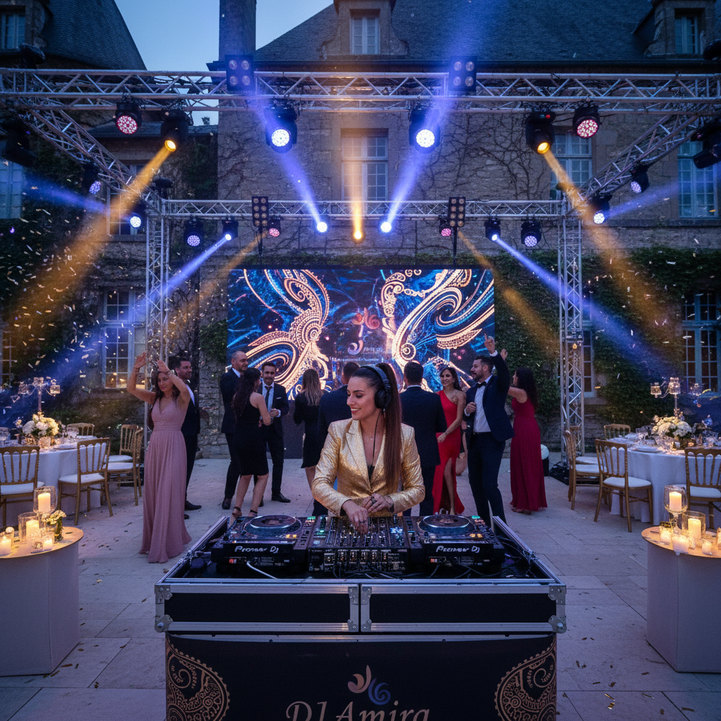 SOS DJ propose une animation musicale complète et professionnelle, spécialement conçue pour vos événements henné et fêtes traditionnelles. Nous disposons d’un matériel de pointe : sonorisation puissante, éclairage d’ambiance, consoles mixtes dernières générations, adaptés tant aux espaces intimes que grands comme le Moulin de Grais ou les Salons de Verrières. Notre prestation inclut la création de playlists personnalisées alliant musiques orientales, pop moderne et classiques traditionnels, ainsi que des animations interactives pour dynamiser votre soirée. Notre équipement mobile assure une installation rapide et discrète, idéale en cas d’urgence.