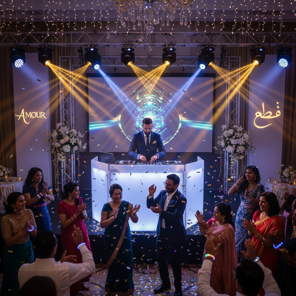 SOS DJ vous accompagne de la première rencontre à la clôture de votre soirée. Nos DJ mixent en direct un répertoire éclectique et personnalisé, mêlant classiques internationaux, hits du moment et musiques traditionnelles selon vos origines pour une ambiance unique.