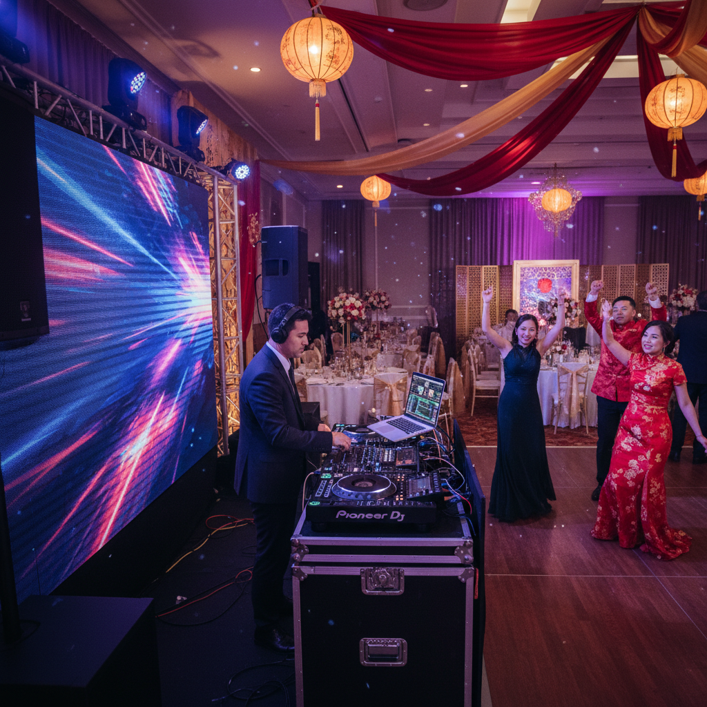 Nous proposons une large sélection musicale allant des rythmes traditionnels du Maghreb et du Moyen-Orient aux tubes pop orientaux actuels, créant ainsi une ambiance festive et respectueuse des traditions. Notre équipement professionnel assure un son clair et puissant, accompagné d’effets lumineux adaptés à chaque moment clé de votre célébration comme la danse du henné ou l’entrée des mariés.